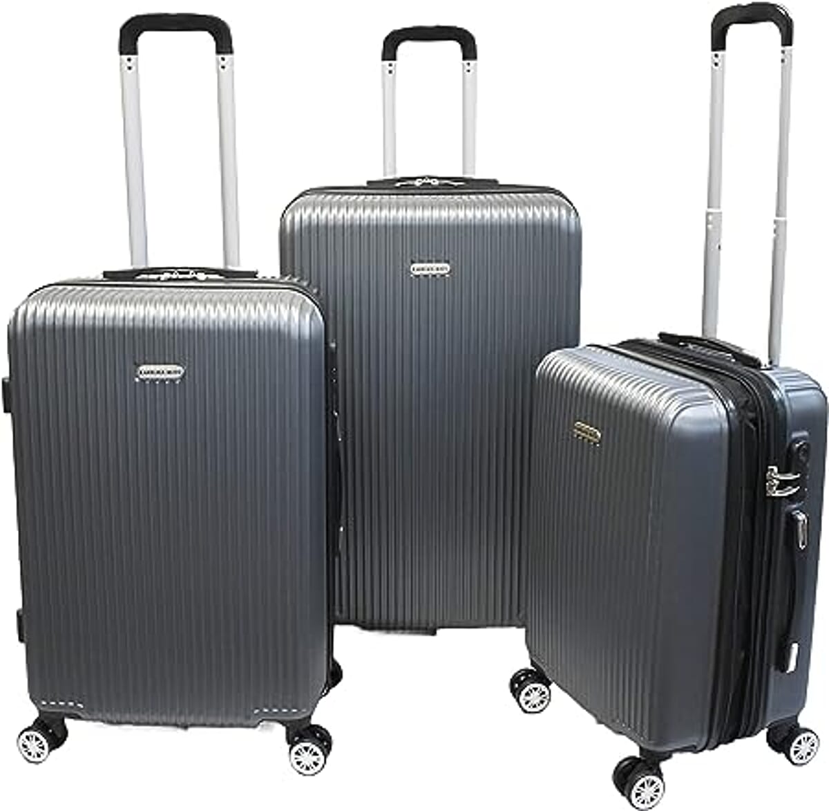 Karriage-Mate Hardside Luggage Set , 3 piece Hardshell Luggage Set , Durable Luggage Set , Hard Shell Suitcase Set of 3, Gray Luggage Set