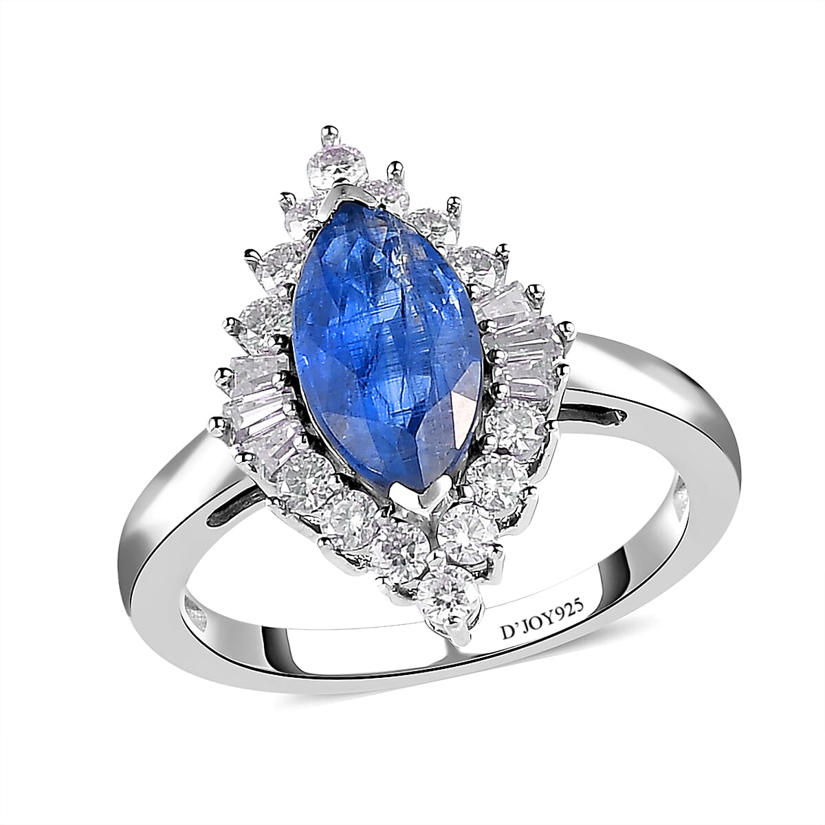 Kashmir Kyanite and Moissanite Halo Ring in Platinum Over Sterling Silver (Size 9.0) 3.25 ctw