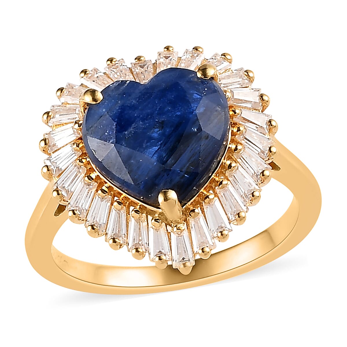 Kashmir Kyanite and Moissanite Heart Halo Ring in Vermeil Yellow Gold Over Sterling Silver (Size 8.0) 5.25 ctw
