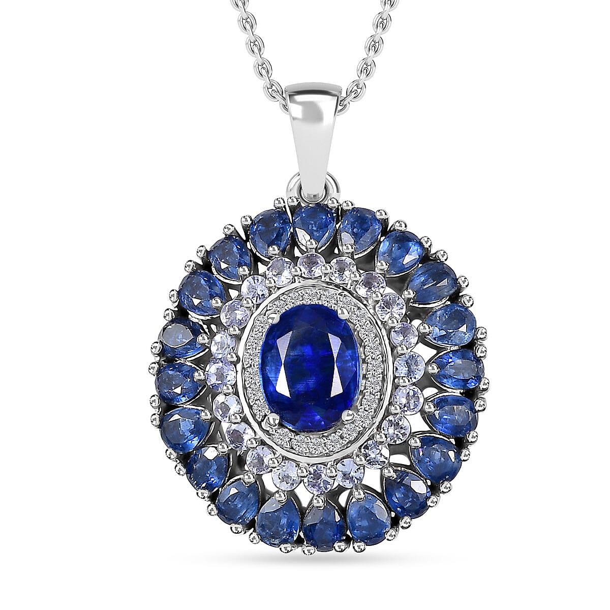 Kashmir kyanite and Multi Gemstone Cocktail Pendant Necklace 20 Inches in Platinum Over Sterling Silver 7.25 ctw