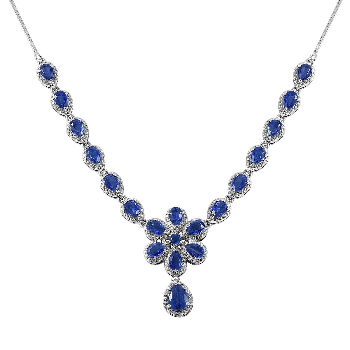 Kashmir Kyanite and White Zircon 11.60 ctw Necklace in Platinum Over Sterling Silver 18 Inches