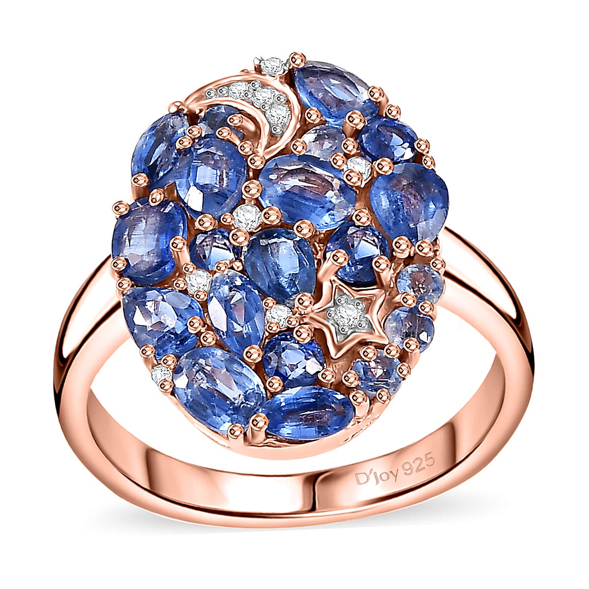 Kashmir Kyanite and White Zircon 2.65 ctw Celestial Ring in 18K Vermeil Rose Gold Over Sterling Silver (Size 9.0)
