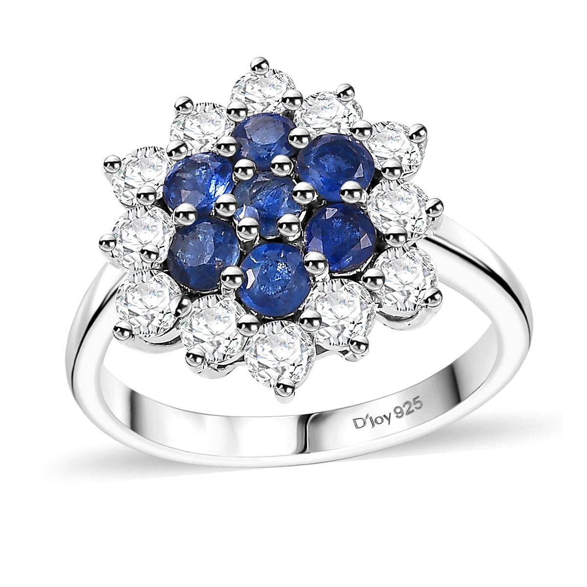 Kashmir Kyanite and White Zircon 2.80 ctw Floral Ring in Rhodium Over Sterling Silver (Size 9.0)