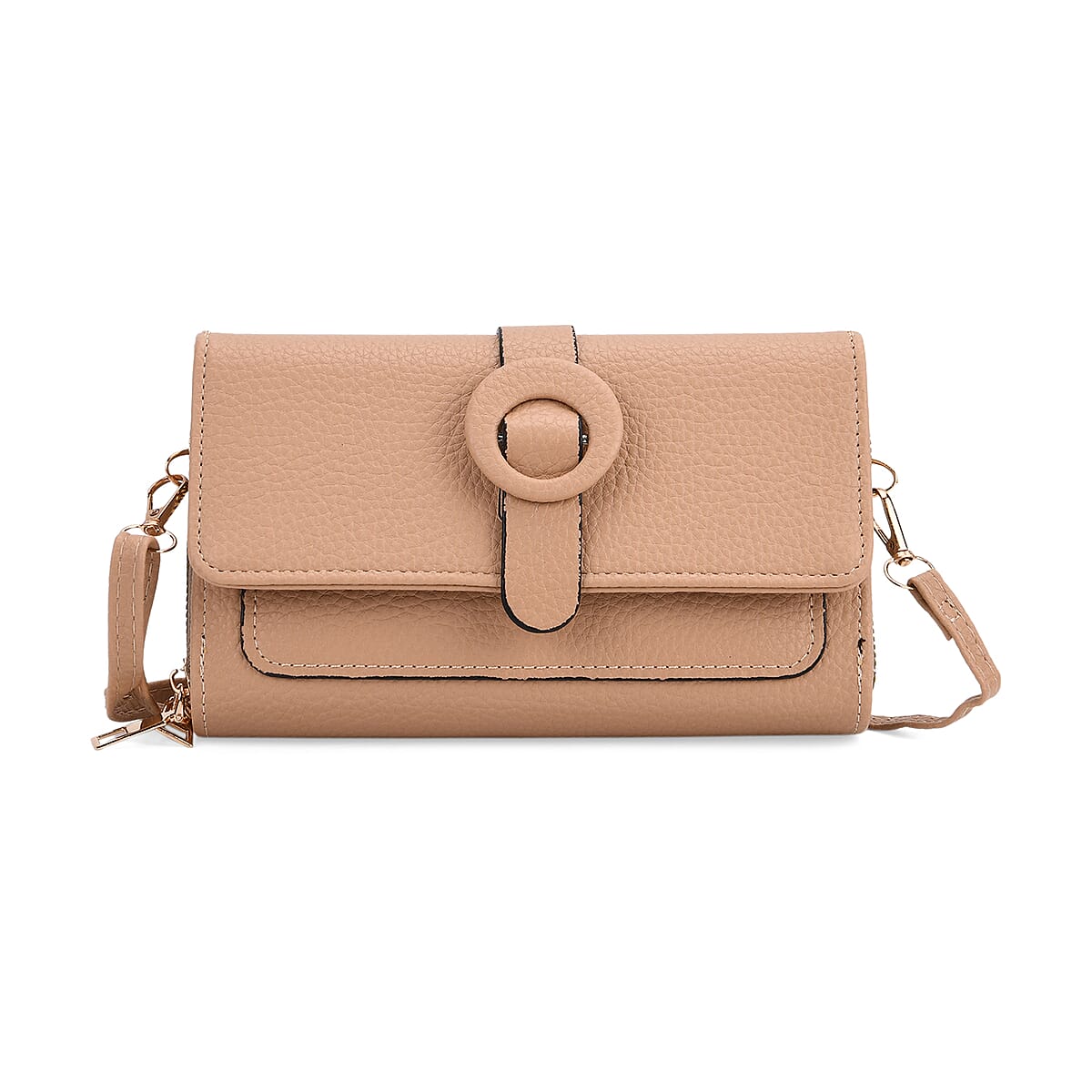 Khaki Solid Faux Leather Crossbody Wallet with Shoulder Strap