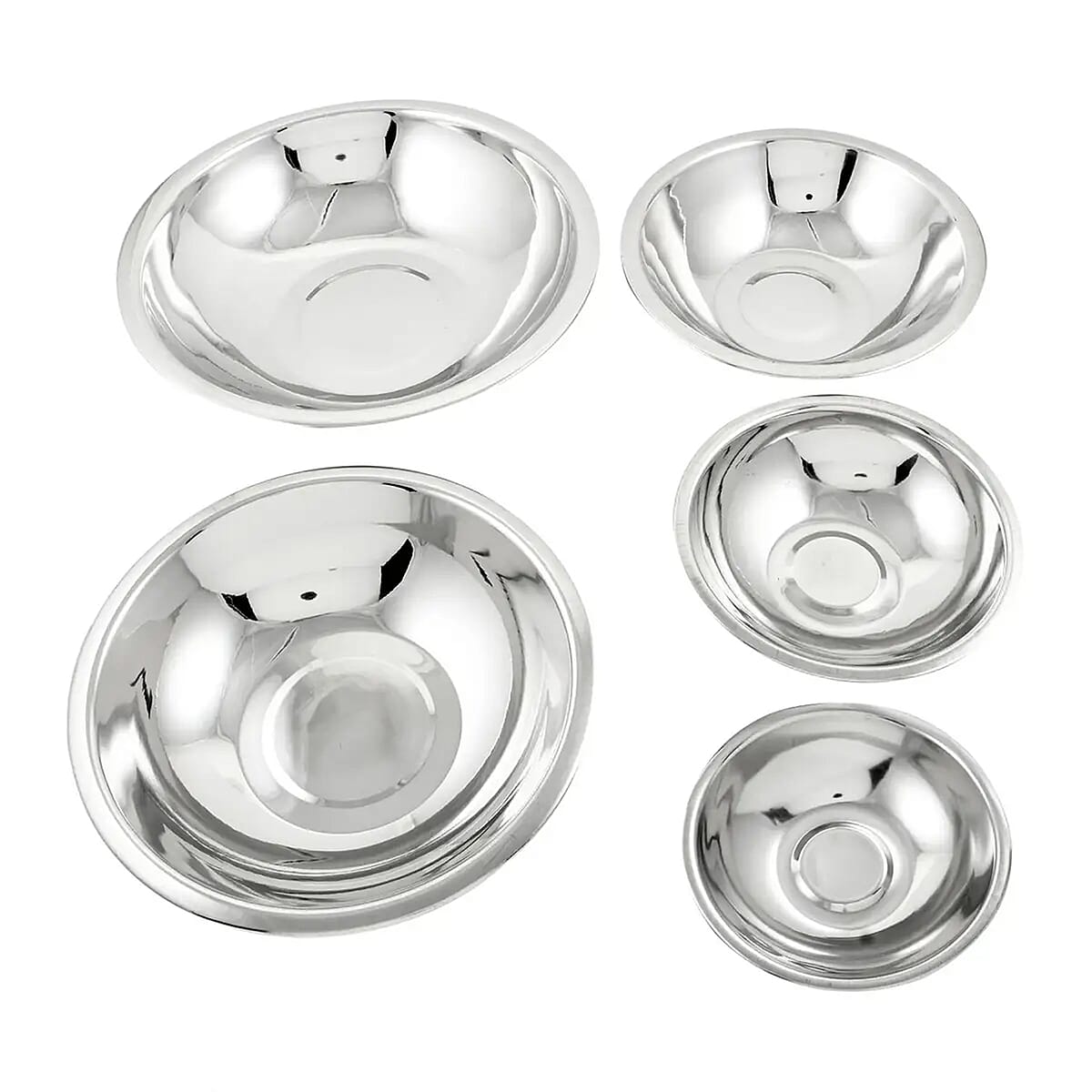 This mixing bowl set comprises five stainless steel bowls, offering durability and versatility for your kitchen needs. With varying sizes, this set provides ample options for mixing ingredients, making it a practical addition to any kitchen arsenal. Elevate your cooking experience with this reliable and functional stainless steel bowl set.