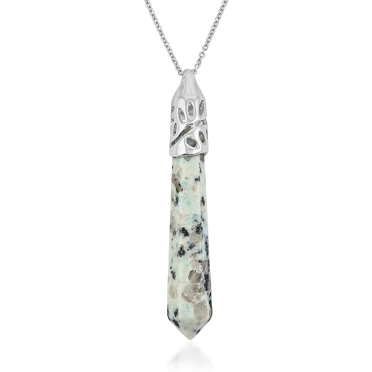 Kiwi Jasper Pendant in Silvertone with Stainless Steel Necklace 38.75 ctw (20 Inches)