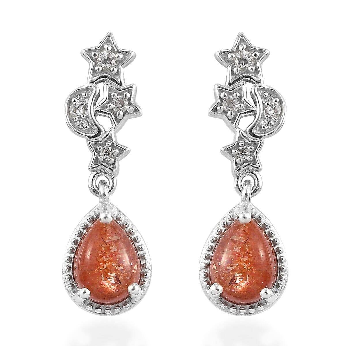 Korevora Sunstone and White Zircon Celestial Dangle Earrings in Platinum Over Sterling Silver 2.40 ctw