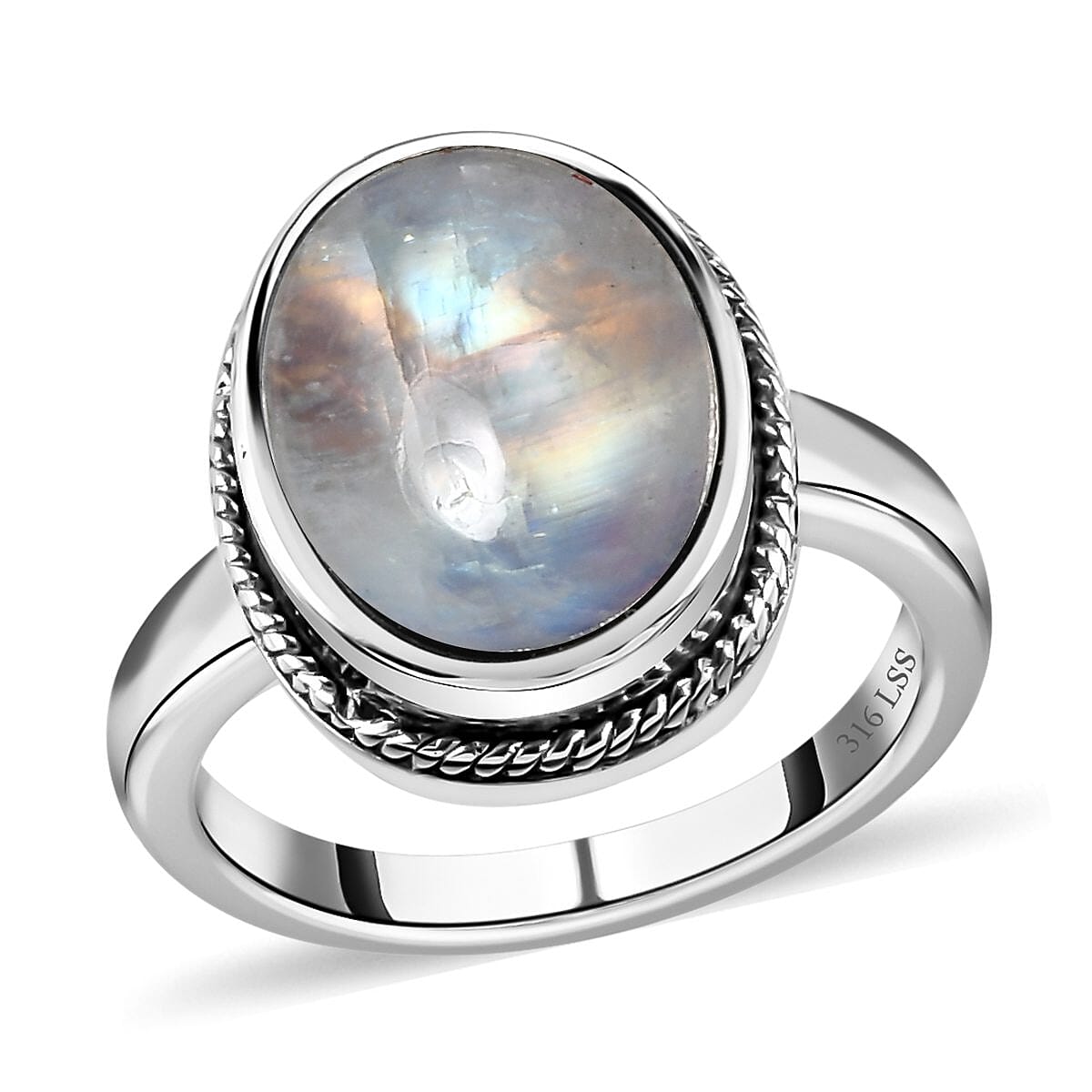 Kuisa Rainbow Moonstone Solitaire Ring in Stainless Steel (Size 7.0) 6.85 ctw