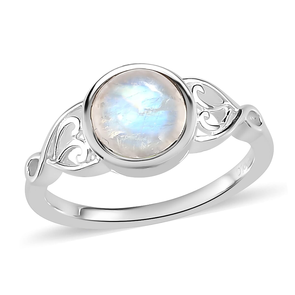 Kuisa Rainbow Moonstone Solitaire Ring in Sterling Silver (Size 8.0) 1.65 ctw