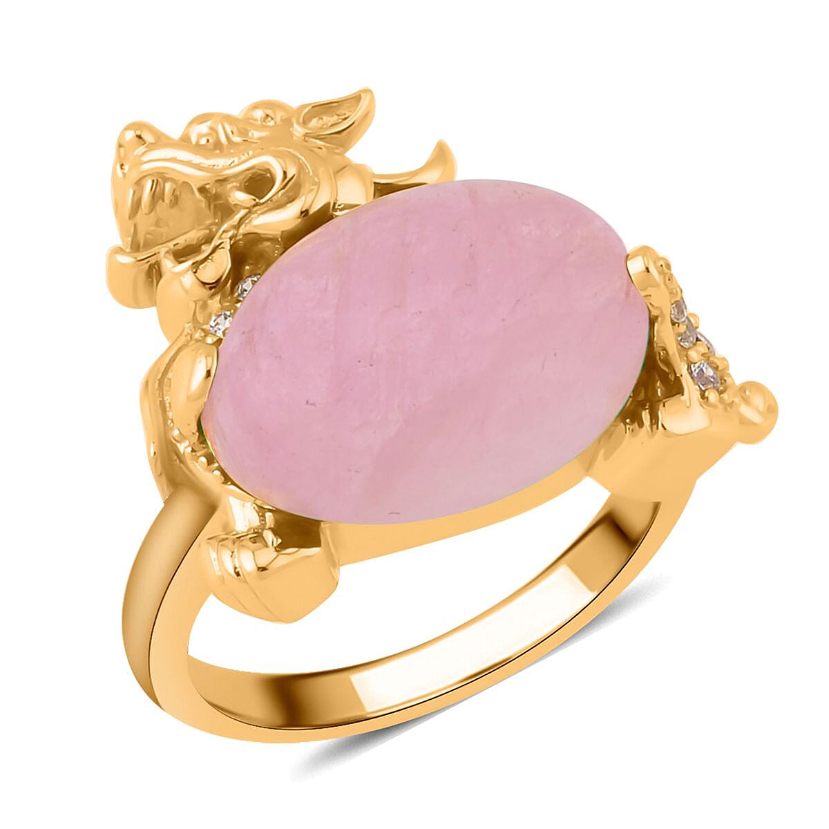 Kunzite and Simulated Diamond Pixiu Ring in Goldtone 6.10 ctw