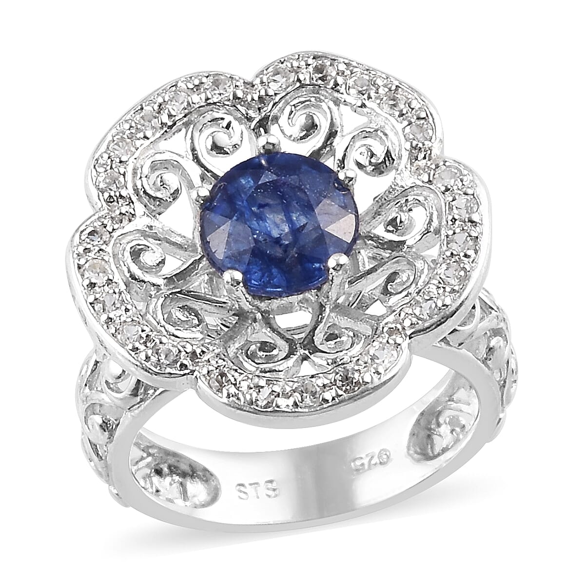 Kyanite and Zircon Ring in Platinum Over Sterling Silver (Size 5.0) 2.00 ctw