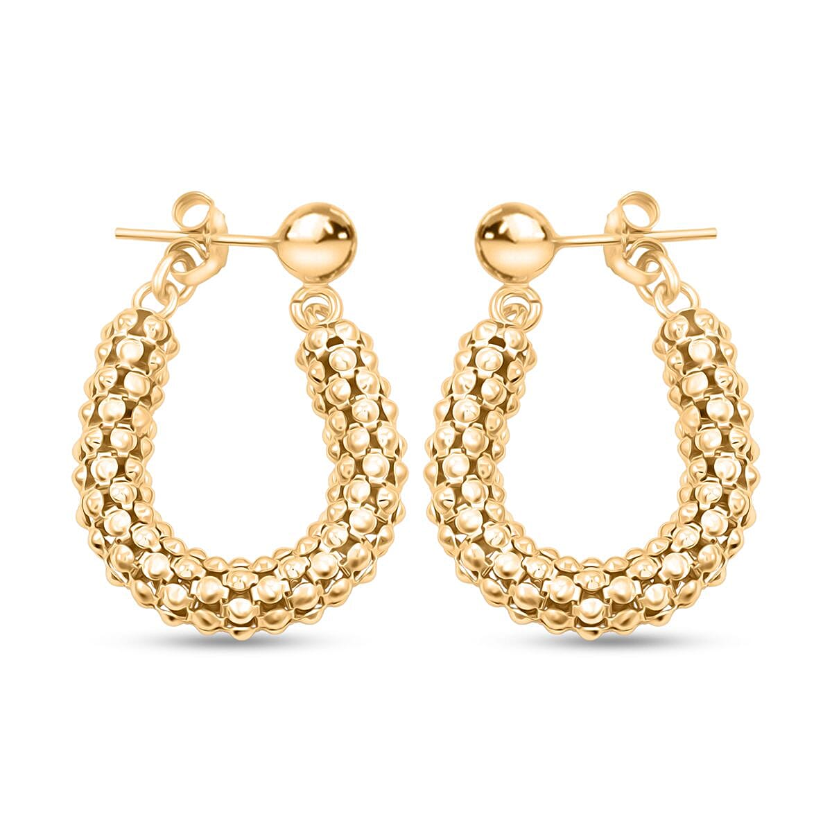 La Bella Italian 14K Yellow Gold Over Sterling Silver Pop Corn Chain Hoop Earrings 6.35 Grams