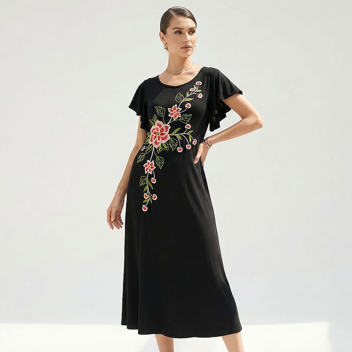 La Marey Black Embroidered Dress - One Size Plus