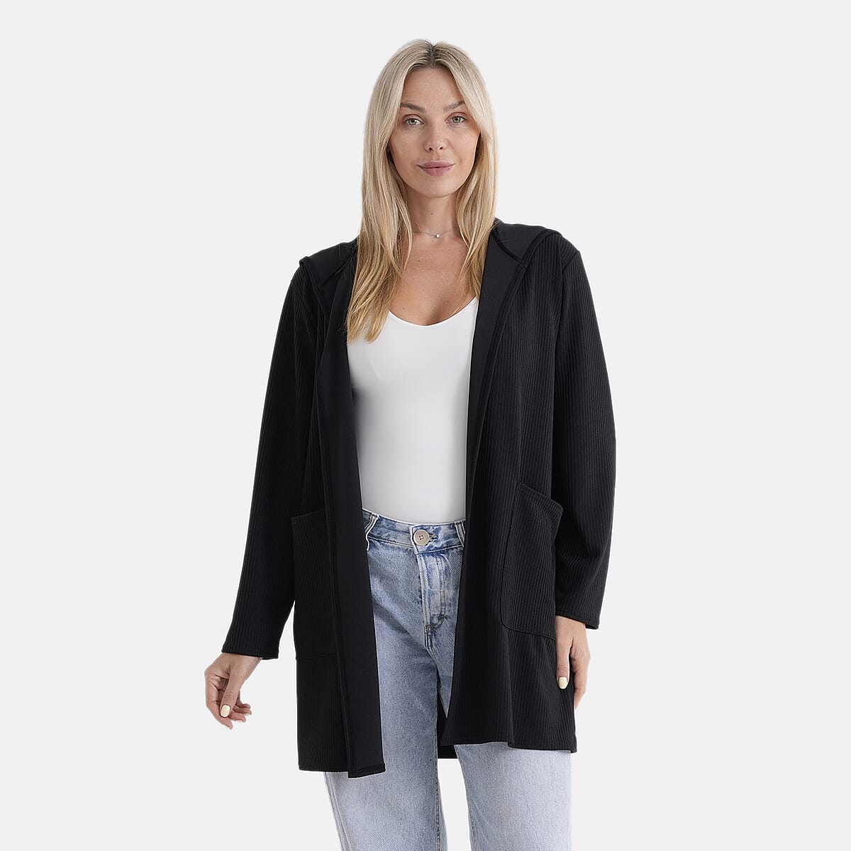 La Marey Black Long Knit Cardigan with Hood and Pockets - One Size Fits Most