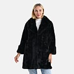 La Marey Black Luxe Faux Fur Trench Jacket -S/M