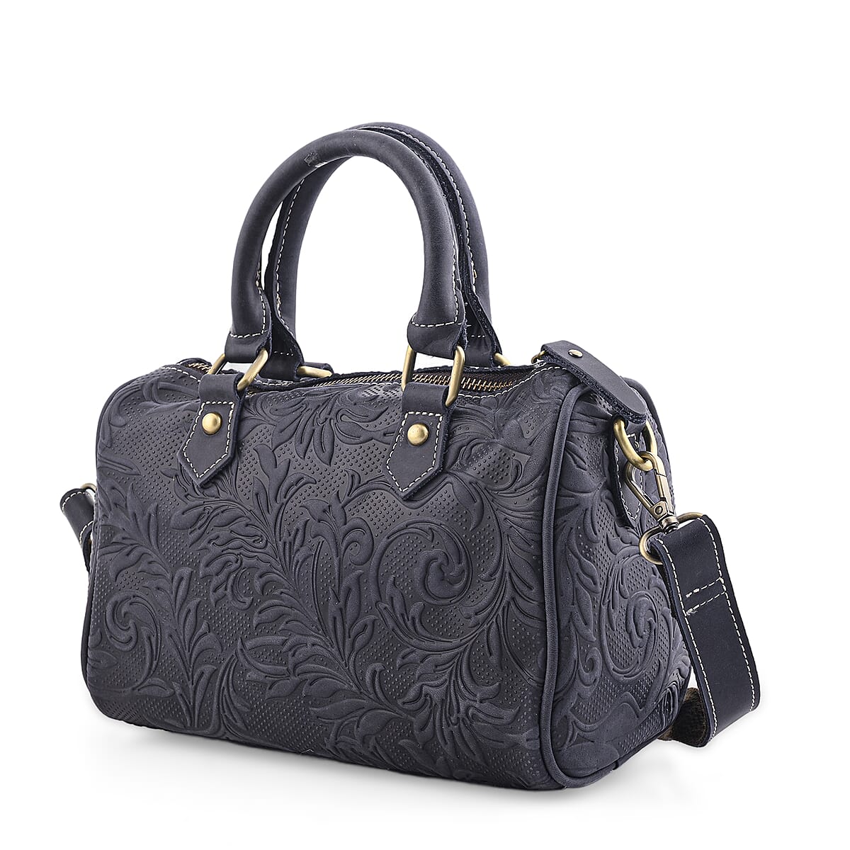 La Marey Blue Herringbone Pattern Genuine Leather Crossbody Bag with Shoulder Strap