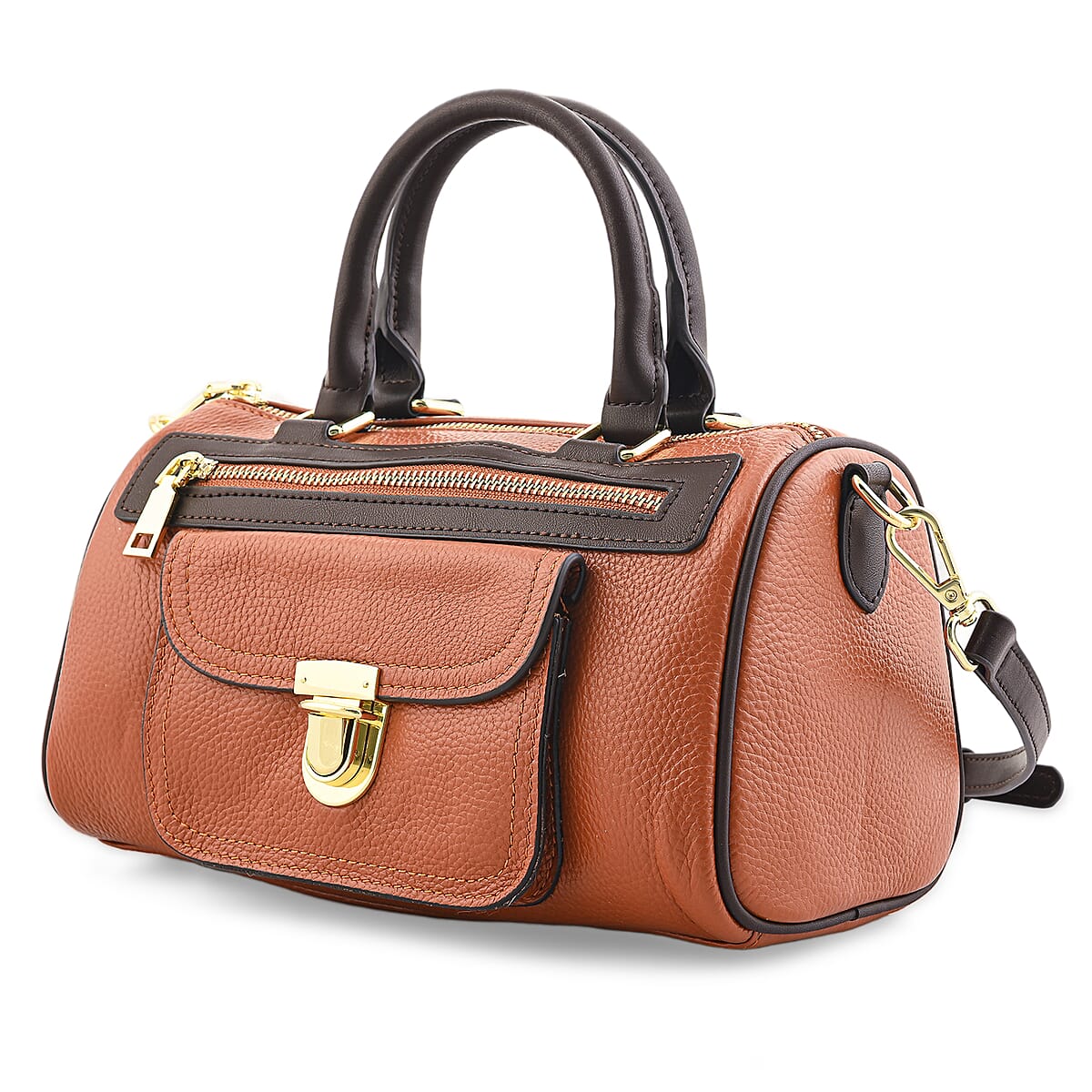 La Marey Brown Genuine Leather Crossbody Bag with Shoulder Strap