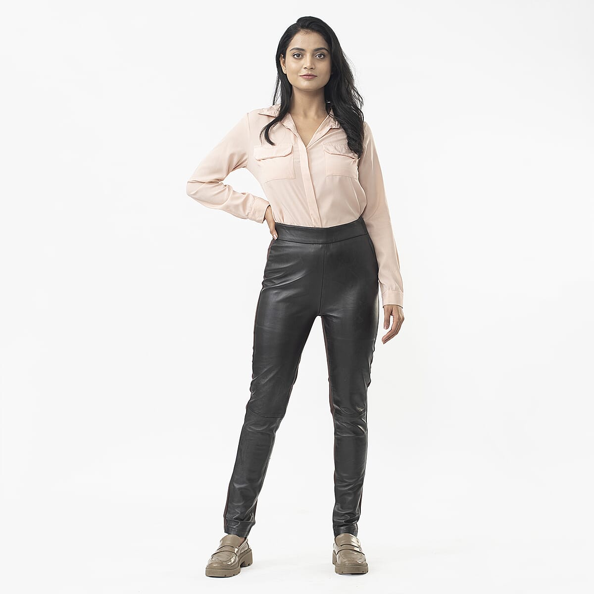 Get a classy and elegant appearance by wearing these perfectly crafted leather leggings from LA MAREY. Made up of genuine lamb leather, it is perfect to wear regularly. Want to make an impression during your office meet or a casual party? Just carry this legging for a perfect look.