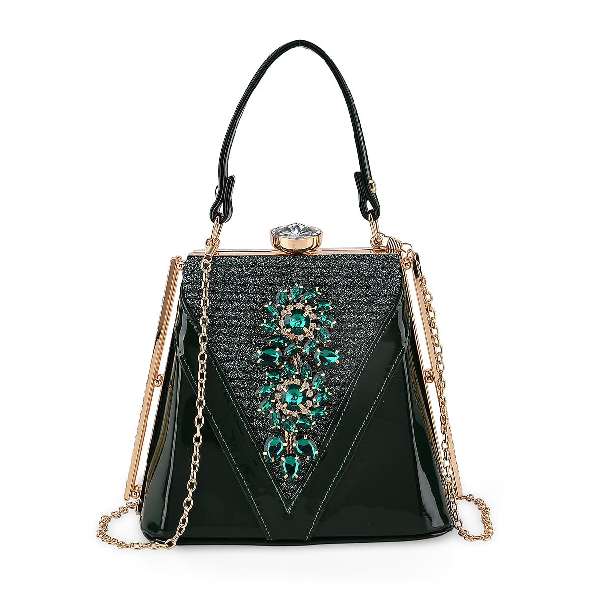La Marey Dark Green Faux Leather Clutch Crossbody Bag with Shoulder Strap