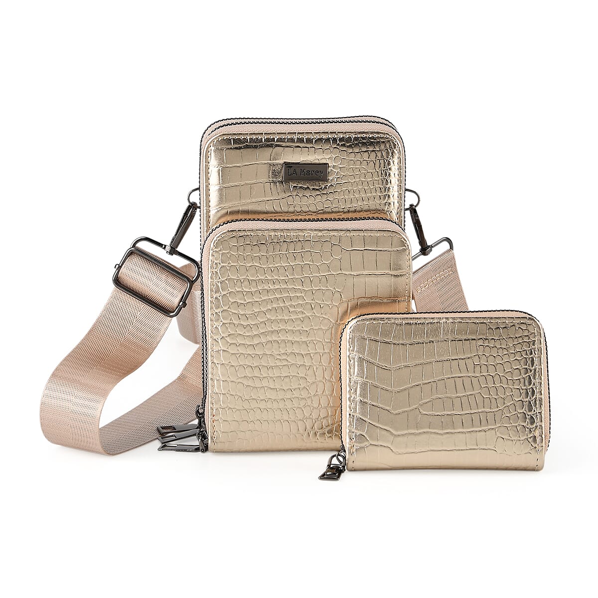 La Marey Gold Faux Leather Crocodile Pattern Phone Bag with Woven Strap