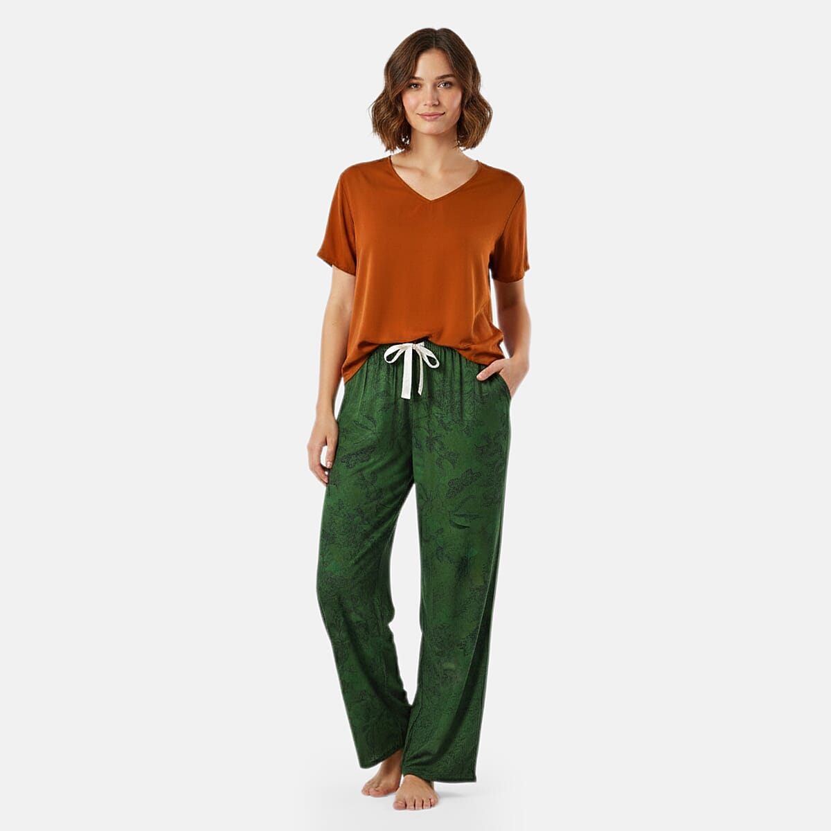 La Marey Green and Brown Casual Basic Tops and Flowy Wide Leg Pants - One Size Fits Most