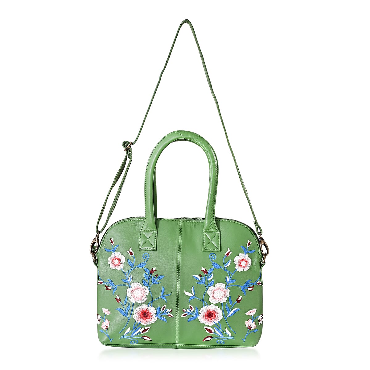 LA Marey Green Genuine Leather Embroidery Work Crossbody Bag with Silk Scarf