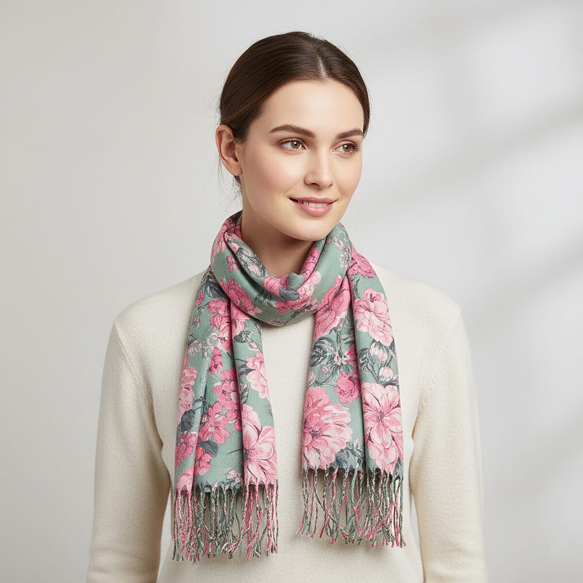 La Marey Light Green Floral Printed Scarf