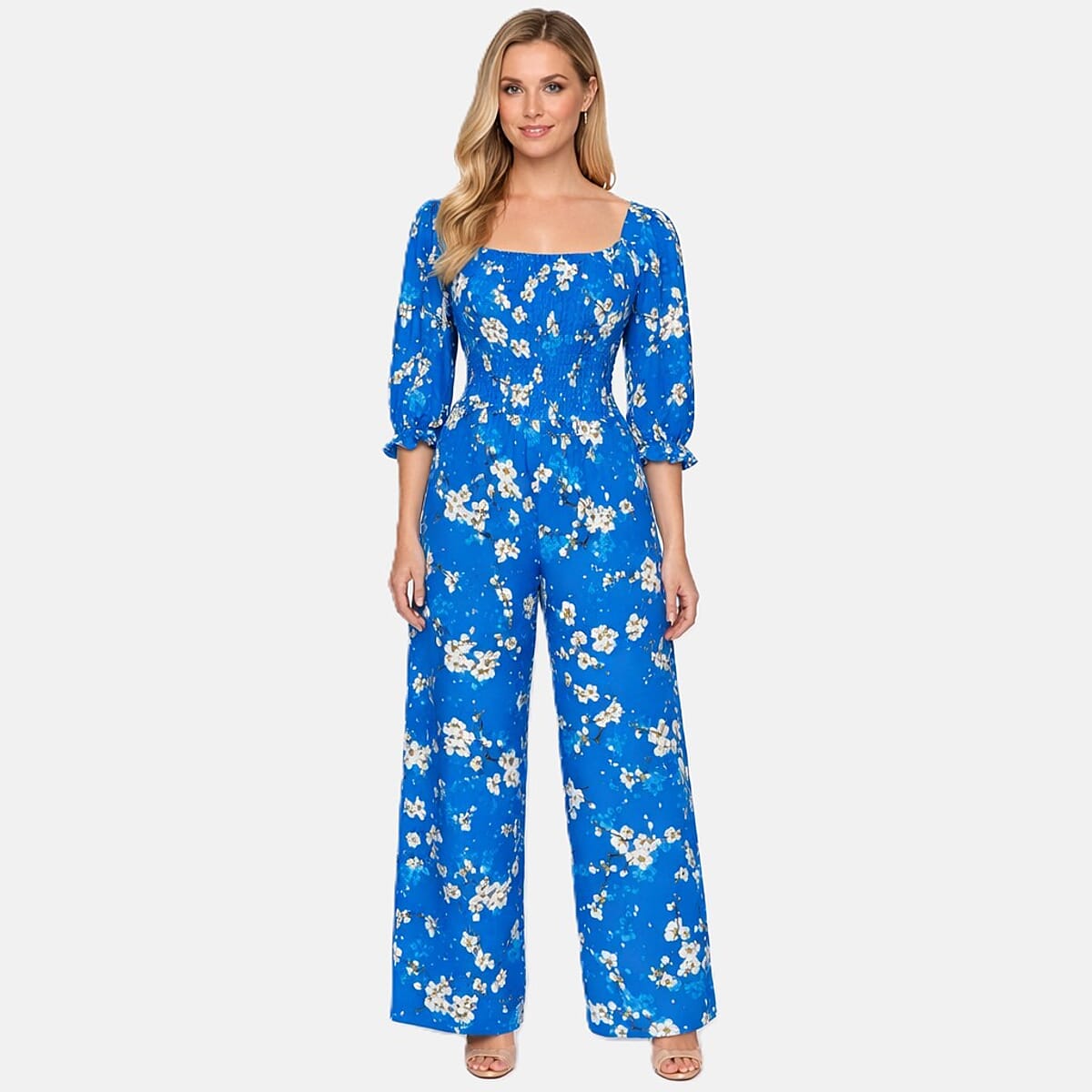 La Marey Multi Blue Blossom Printed Embroidered Top - One Size Plus
