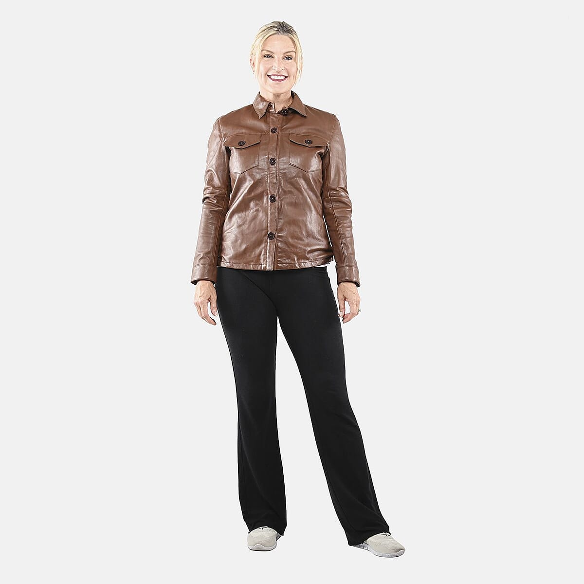 This genuine lambskin button-up shacket combines the softness of premium lambskin leather with a stylish, relaxed fit. Featuring a classic button-up design, it effortlessly bridges the gap between a jacket and a shirt, adding versatility to any wardrobe. Perfect for layering, this shacket brings both warmth and sophistication to your look.