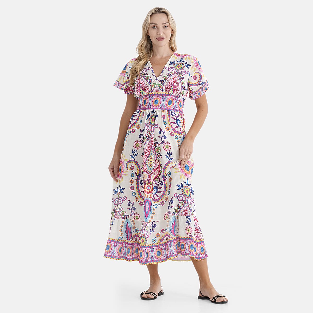 La Marey Pink Floral Woven Dress with Back Smocking - One Size Plus
