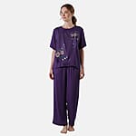 La Marey Purple Floral Short Sleeve Top and Wide Leg Pants- One Size Fits Most