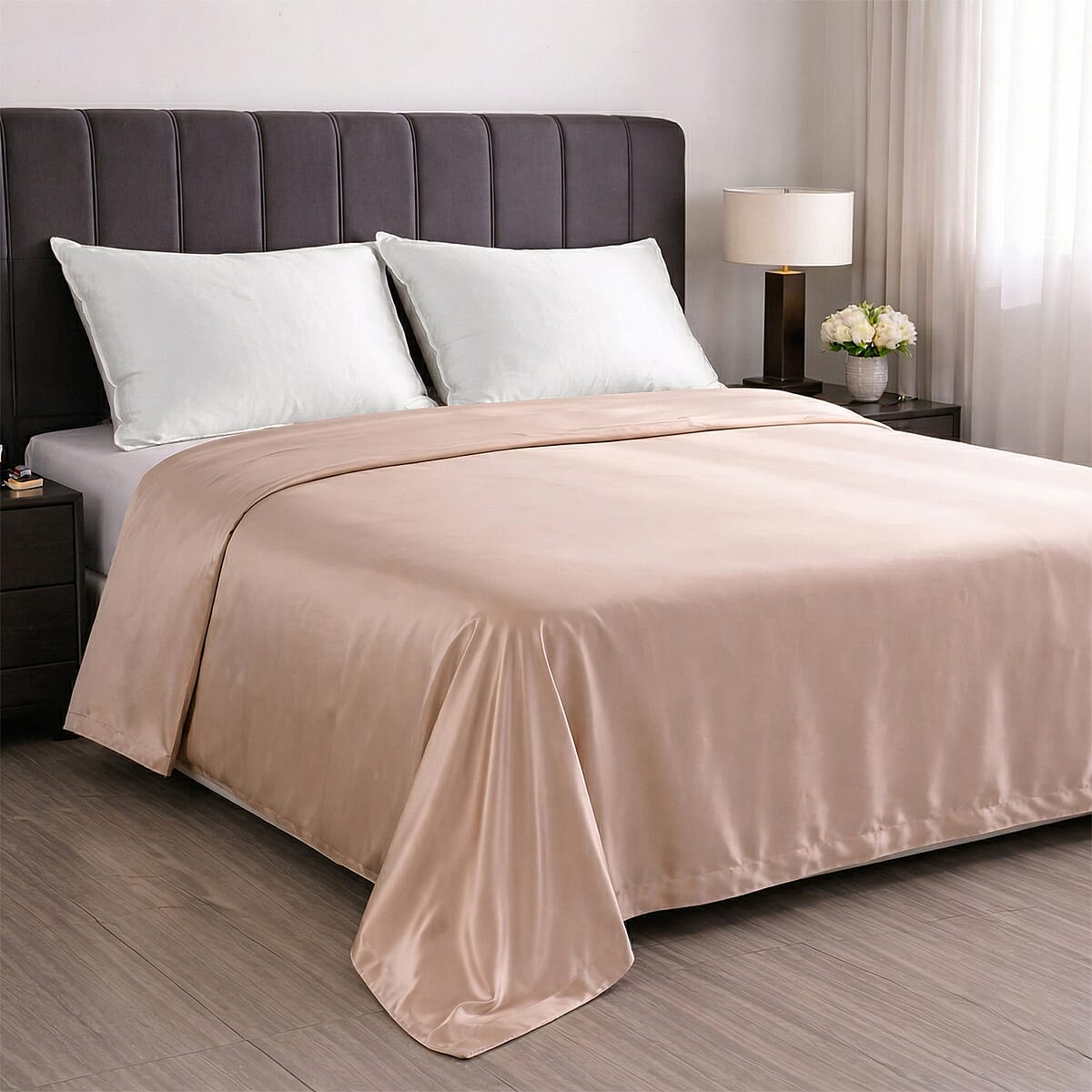 Indulge in the La Marey mulberry silk duvet cover for unmatched comfort. Its breathable fabric promotes restful, tranquil sleep every night. This luxury duvet cover features a sophisticated, solid beige design. It brings elegance and serenity to your personal retreat.