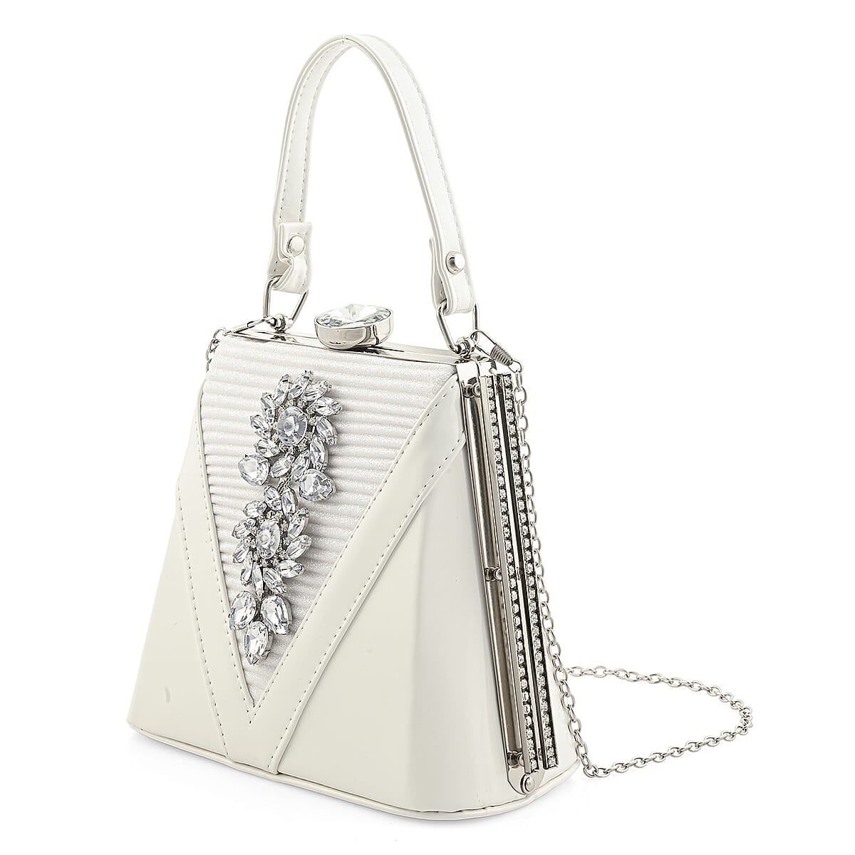 La Marey White Faux Leather Clutch Crossbody Bag with Shoulder Strap