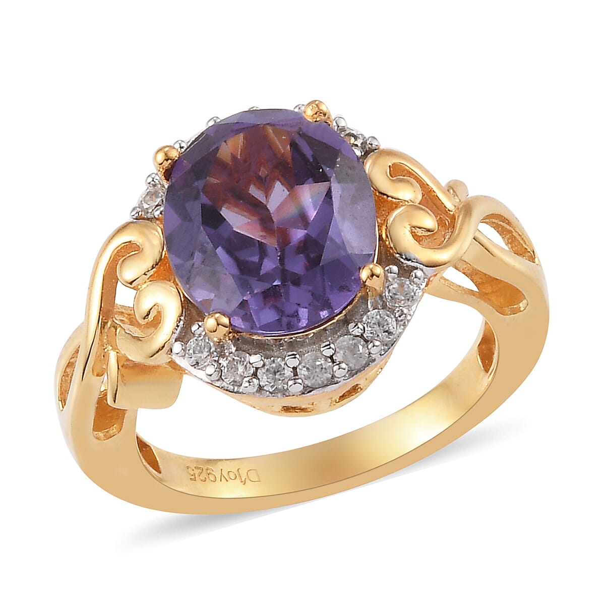 Lab Created Alexandrite and Natural White Zircon Heart Frame Statement Cocktail Ring in Vermeil YG Sterling Silver (Size 8.0) 5.00 ctw