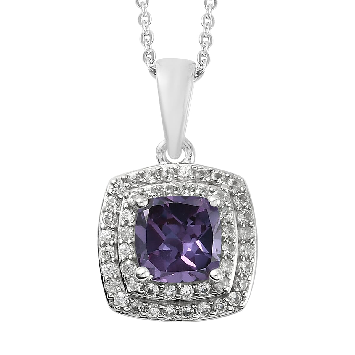 Lab Created Alexandrite and Natural White Zircon Pendant Necklace 20 Inches in Platinum Over Sterling Silver 1.80 ctw