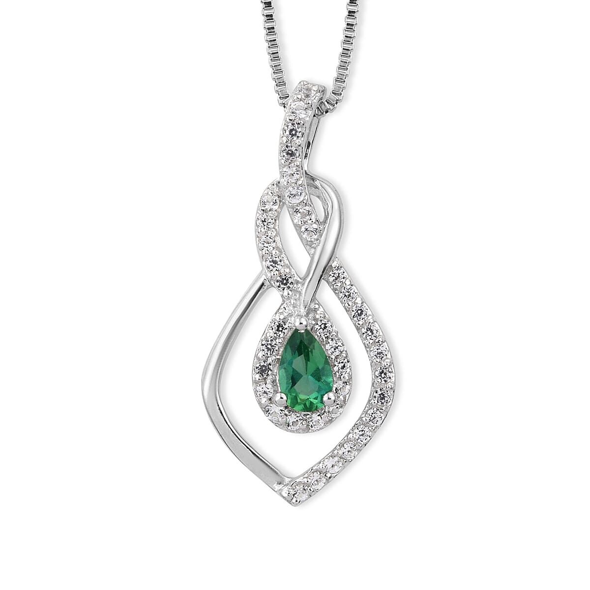 Enhance your style with this lab-created emerald and sapphire pendant necklace in 925 sterling silver. This elegant gemstone pendant necklace showcases vibrant lab-created emerald accented by sparkling lab-created white sapphire. Crafted in sterling silver, it delivers refined shine and timeless everyday sophistication.