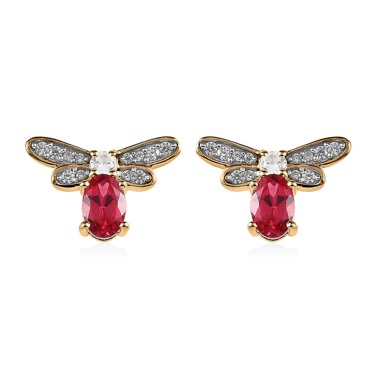 Lab Created Padparadscha Sapphire and White Zircon Bee Earrings in Vermeil Yellow Gold Over Sterling Silver 1.90 ctw