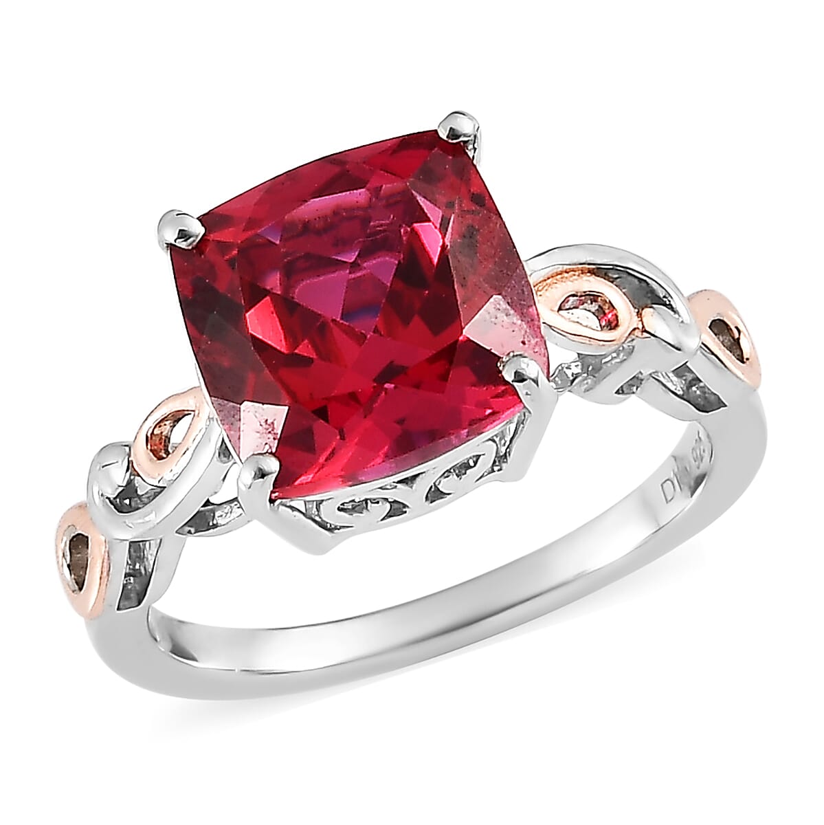 Experience the enchantment of the lab created Padparadscha sapphire solitaire ring in rose gold vermeil and platinum over sterling silver. This exquisite solitaire jewelry showcases a stunning lab-created Padparadscha sapphire, renowned for its mesmerizing pinkish-orange hue and exceptional brilliance. The designer shank, adorned with smooth scrolls, adds a touch of sophistication. With its dual metal finish and unparalleled beauty, this sterling silver ring for women is a true masterpiece.