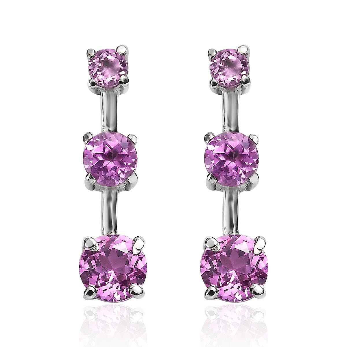 Lab Created Pink Sapphire 2.25 ctw Earrings in Stainless Steel