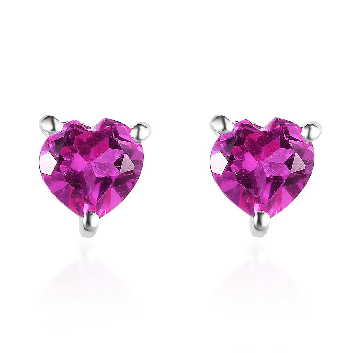 Lab Created Pink Sapphire Heart Stud Earrings in Sterling Silver 1.60 ctw