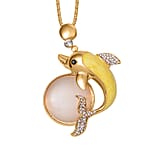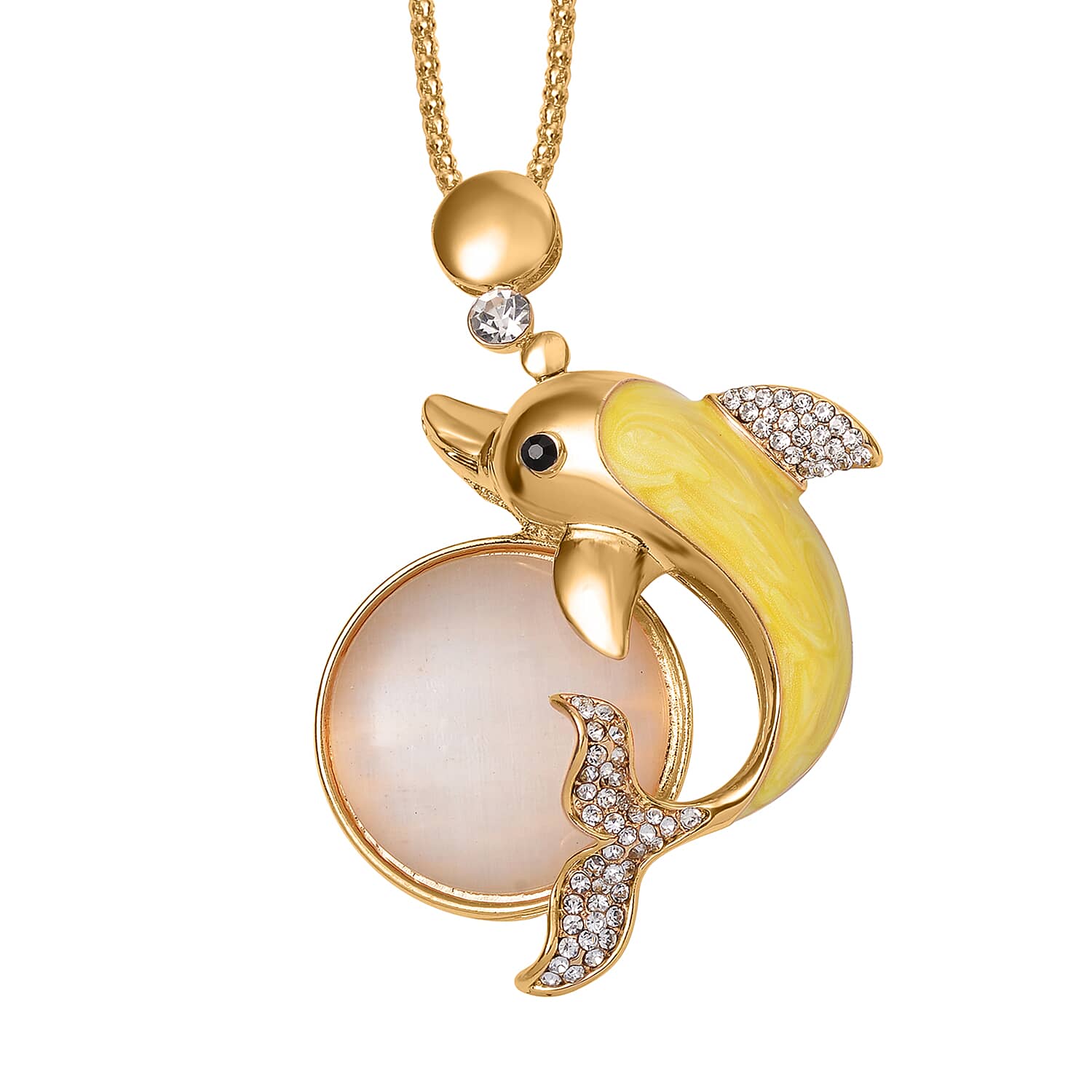 Lab Created White Cat's Eye, White and Black Austrian Crystal Dolphin Necklace in Goldtone 29-31 Inches