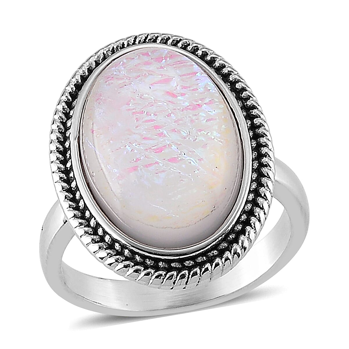 Lab Created White Opal Ethereal Frost Aura Ring in Stainless Steel (Size 6.0)
