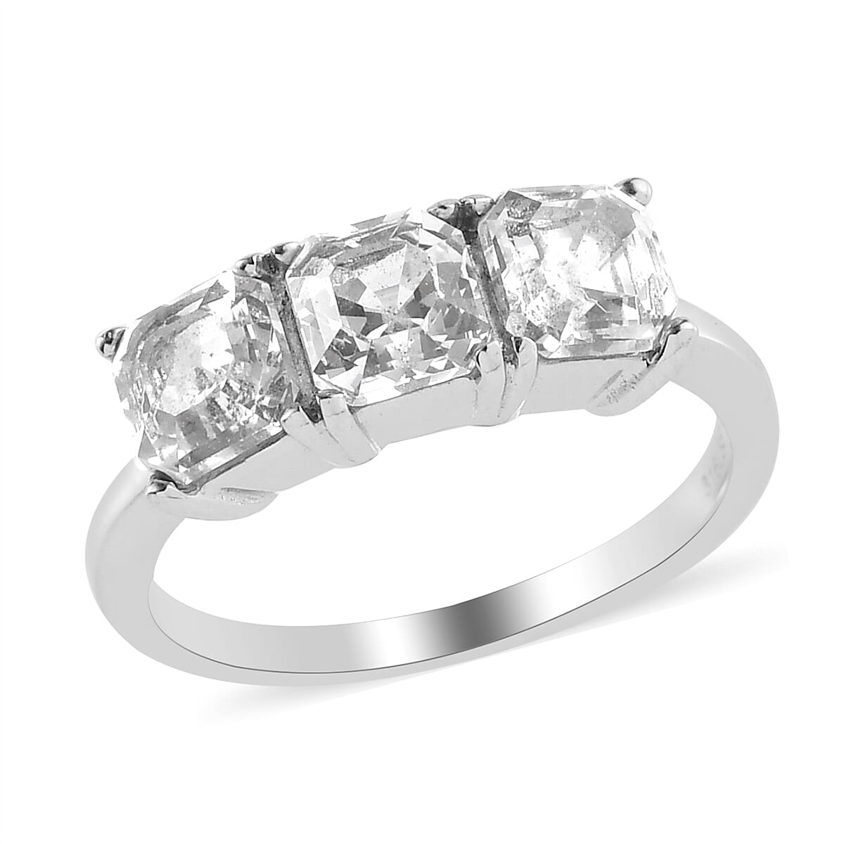 Lab Created White Sapphire 3 Stone Ring in Stainless Steel (Size 7.0) 2.60 ctw