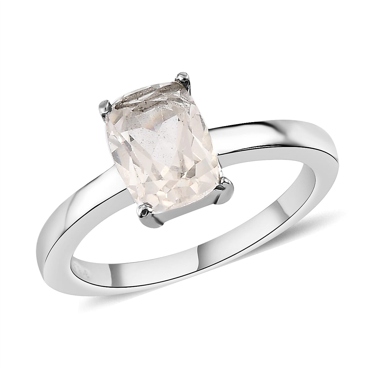 Experience timeless elegance with our enchanting lab created white sapphire solitaire ring. Adorn your finger with this captivating piece featuring a cushion-shaped gemstone held securely by four prongs. The smooth stainless steel shank adds a touch of modernity to this exquisite lab-created sapphire ring, ensuring you shine with effortless grace.
