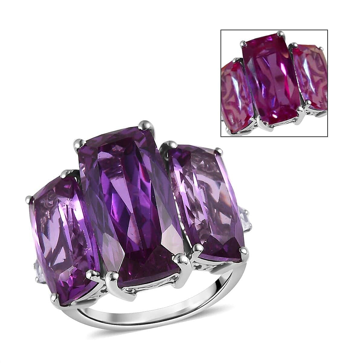 Lab Grown Color Change Sapphire and White Zircon Ring in Platinum Over Sterling Silver (Size 8.0) 23.60 ctw