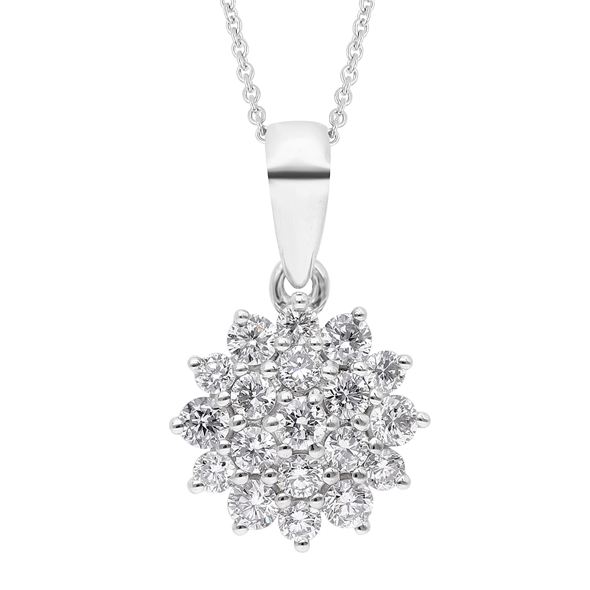 Lab Grown Diamond G-H SI Floral Pendant Necklace 16-18 Inches in Platinum Over Sterling Silver 0.50 ctw