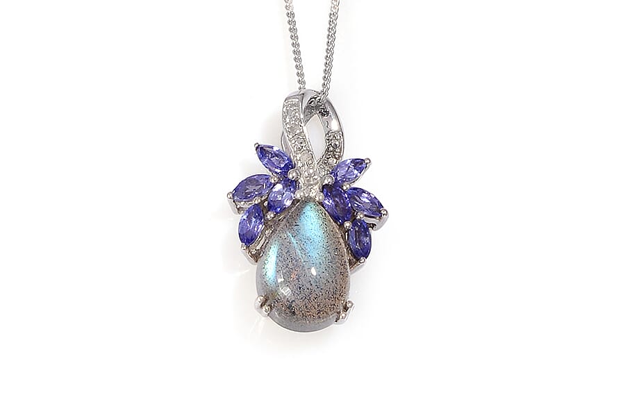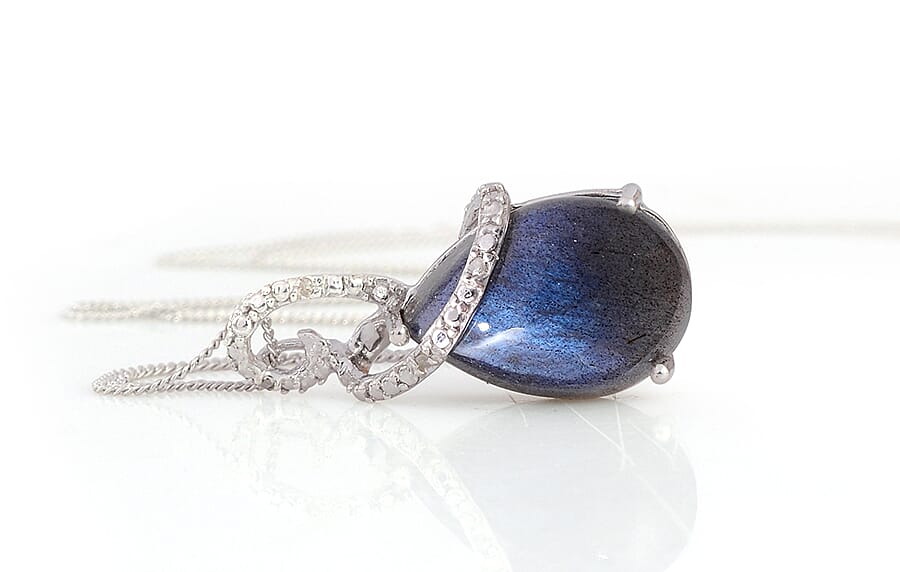 Labradorite belongs to the plagioclase branch of the feldspar group. Its "schiller" or metallic luster can be observed when light hits the stone at an angle. Its metallic luminance called labradorescence includes violet blue green yellow and red hues. The presence of fine platelets of various materials and tiny additions of limenite rutile and magnetite produce this spectacular diffusion of light.