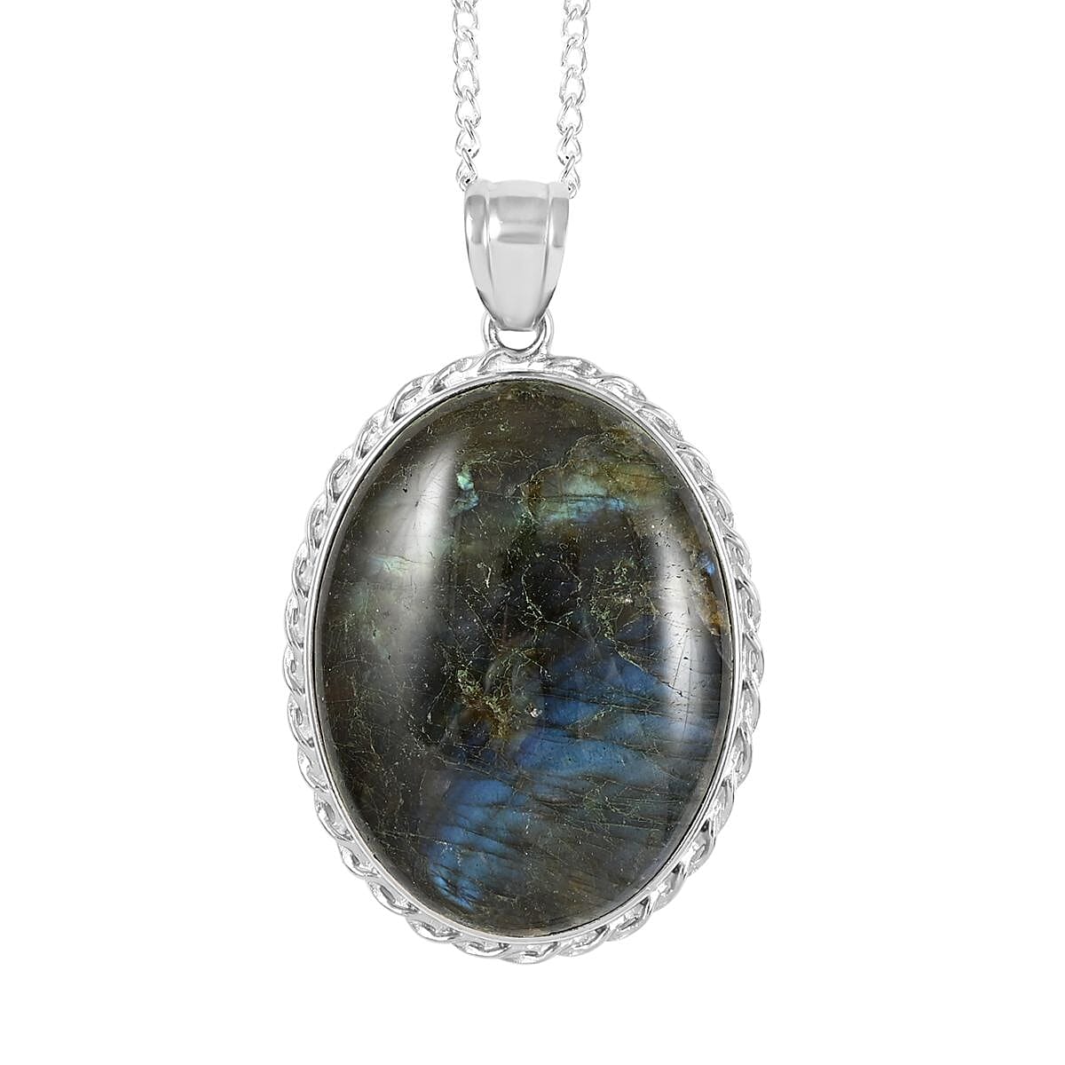 Labradorite Oval Pendant Necklace 18 Inches in Silvertone 67.00 ctw