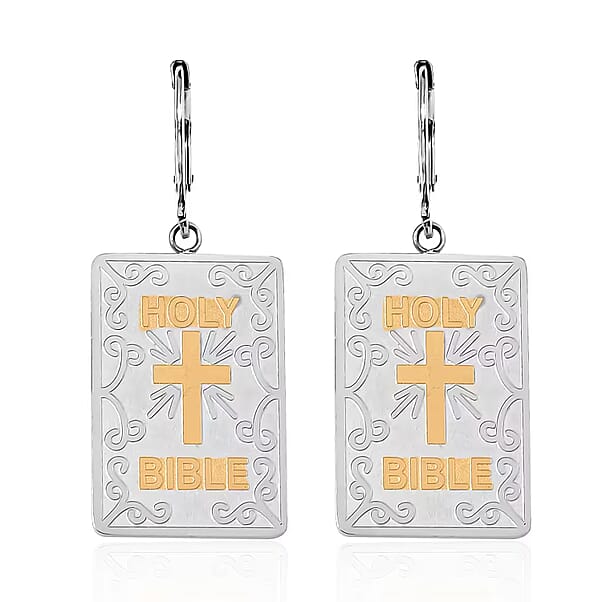 Bible Book Earrings in ION Plated YG and Stainless Steel