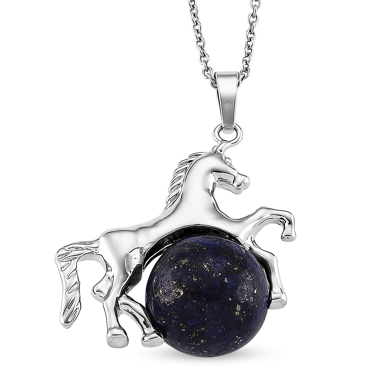 Lapis Lapzuli 38.00 ctw Pendant in Silvertone with Stainless Steel Necklace 20 Inches